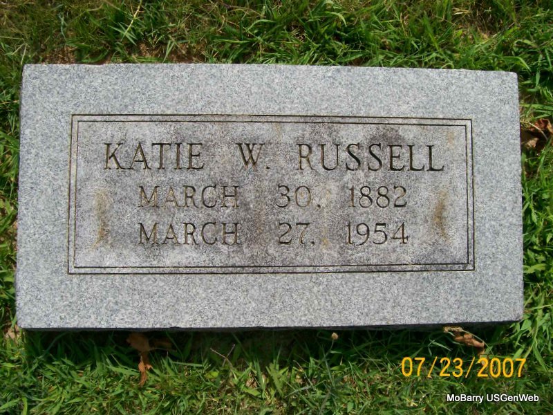 | RUSSELL, Katie W. (GAYDOU) | Mar. 30, 1882 Monett, MO |