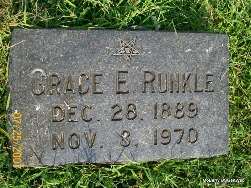 Research Note: She is buried next to James H. Runkle. The funeral home was Brown in Enid, OK, according to the log book. Daughter of Charles C. Hoff and Ida Elnora (Garrison) (Hoff) Baity. Ida is buried in IOOF Cemetery under Baity. James H. Runkle married Grace E. Hoff on Nov. 8, 1911 in Monett, Barry Co., MO. | IOOF Log Book MO Marriage Records Census Phyllis Long Photo Jay Trace |
