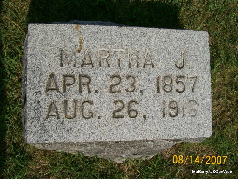 Research Note: She is buried next to Edward W. Russey. Her death certificate names Andrew Withers as her father and Jane Hewlett as her mother's name. - Obit: Aug 31. 1916, Cassville Republican, Barry Co., MO Mrs. E. W. Russey: Martha Jane Withers was born in Lawrence County, Missouri, April 23, 1857 and departed this life as Monett, August 26, 1916. She was converted and united with the Mt. Olivet church thirty-two years ago, and later moved to Monett, where she united with the First Baptist Church. She lived a consistent Christian life, always read to do the Master's work. She was married Jan 1, 1890 to E. W. Russey. They were the parents of four sons and three daughters, all of whom are living. They are Frank Russey, of Boyero, Colo.; Andrew of San Antonio, Tex.; Edward Russey, of St. Louis; Mrs. Carrie Howard, of New York City; Arthur, Leta and Bessie Russey, of Monett. All will be present at their mother's funeral. Besides the devoted husband and children she is survived by three brothers, three sisters, other relatives and a multitude of friends. Funeral services will be held at the Baptist church Tuesday morning at 10 o'clock, conducted by the pastor, Rev. W. A. Todd. Interment will be made in the Odd Fellows Cemetery. | Death Certificate Donna Cooper Online Obit Phyllis Long Photo Jay Trace |