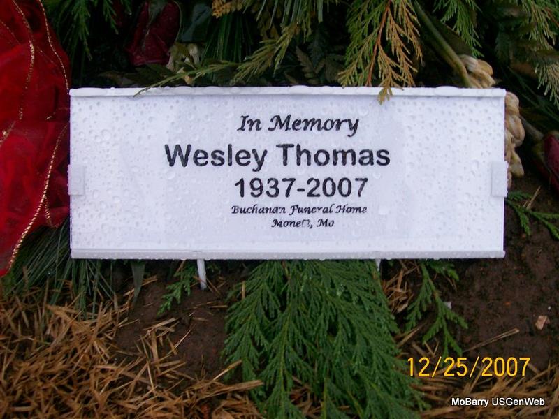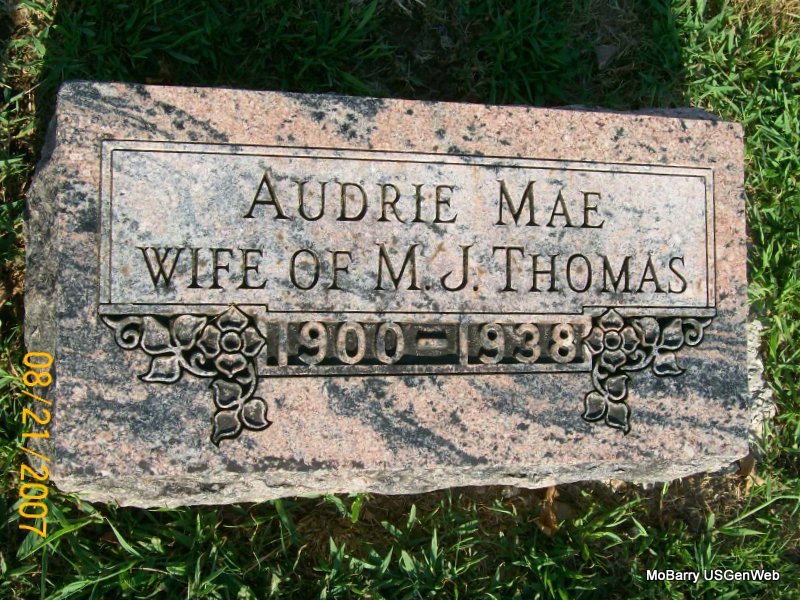 Research Note: His wife was Anna Oma Smith. He was a mail man. Parents not given on the death certificate. Vance Davis of Monett, MO was the informant on the death certificate. - Son of Isaac Francis Thomas and Sarah L. Wilks. - Thomas Plot Stone | Death Certificate Census Phyllis Long Photos Jay Trace |