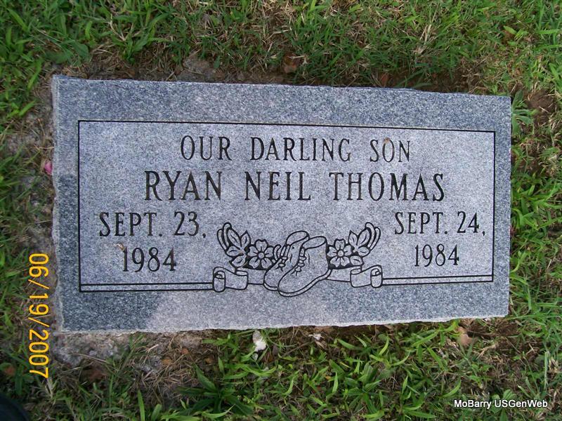 | THOMAS, Ryan Neil | Sept. 23, 1984 | Sept. 24, 1984 | Inscription: "Our Darling Son" | Photo Jay Trace |