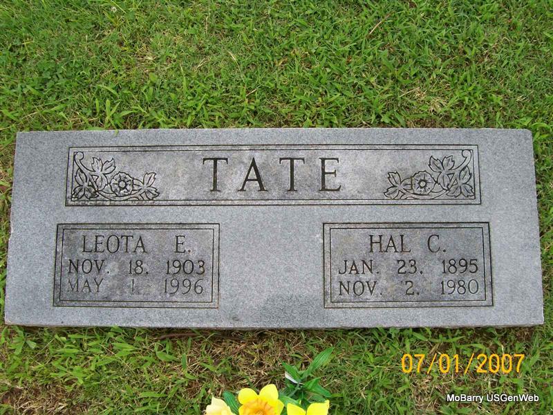 | TATE, Hal Columbus | Jan. 23, 1895 | Nov. 2, 1980 | SSW: Leota E. - Research Note: Son of Columbus C. Tate and Nancy Leila Weaver. | Census Phyllis Long Photo Jay Trace |