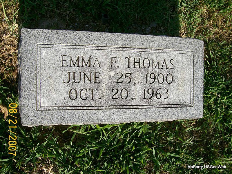 | THOMAS, Emma (FISK) | June 25, 1900 | Oct. 20, 1963 Osteopathic Hosp., Cassville, Barry Co., MO |