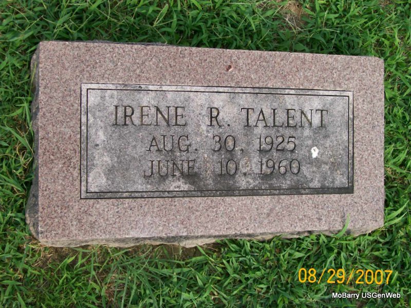 | TALENT, Irene Rose (WASHECK) | Aug. 30, 1925 Kansas City, Johnson Co., KS |