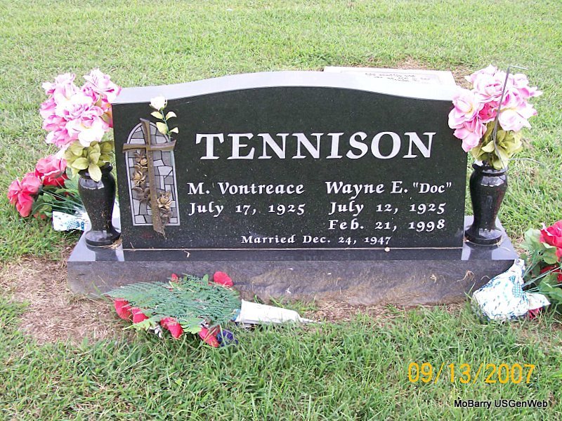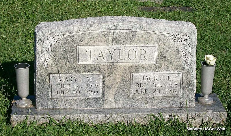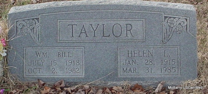 | TAYLOR, Helen L. (DOENNIG) | Jan. 28, 1915 | Mar. 31, 1985 | SSW: William "Bill" E. - Research Note: Daughter of August Hermann "Gus" Doennig and Mary Ann Burkey. Helen L. Doennig, age 36, married William E. Taylor, age 32, on May 13, 1951 in Mt. Vernon, Lawrence Co., MO. | Census MO Marriage Records Phyllis Long Photo Connie Schmidt |