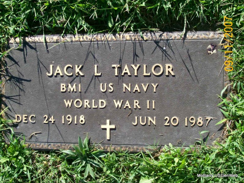 | TAYLOR, Jack Leo | Dec. 24, 1918 | June 20, 1987 | SSW: Mary M. - Research Note: Jack Leo Taylor, son of Late Sylvanius and Anna Margaret (McMullin) Taylor. Husband of Mary M. Horine. - Another Photo - Military Stone - Inscription: "BMI US NAVY WORLD WAR II" | Note Photo Wilma Fields Photos Jay Trace |