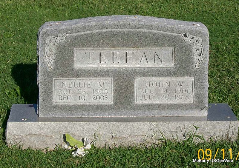 Research Note: Daughter of Amanda Lee (Hughlett) Granger buried at IOOF, and her father was William S. Granger. Mrs. Albert Hallen of San Antonio, TX was the informant on the death certificate. First husband was Phillip Tate, the next entry. Second husband, Donald Elmer "Don" Williams is buried in the Tate plot. - This stone doesn't have the Tate surname on it, but it is for Nora (Granger) (Tate) Williams, wife of Phillip Tate. They lived in Grand Junction, CO, and his obit gives details of their marriage and of other family connections. October 26, 1907, Saturday, Cassville Democrat - Marriage License: Phillip Tate and Nora Granger, Monett. She isn't listed in the cemetery log book. - Granger Plot Stone | Note Donna Cooper Online Newspapers TX Death Certificate Census Phyllis Long Photo Jay Trace |
