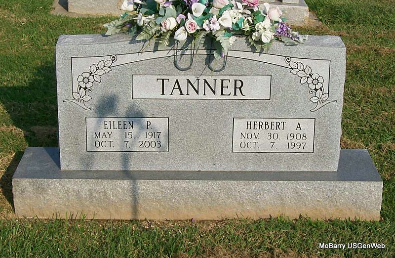 SSW: Herbert A. - Research Note: Eileen Tanner, age 86, of Monett, died October 7, 2003, at Christian Health Care Center in Republic. She was born May 15, 1917, in Monett, and was a daughter of Nathan and Opal (Richardson) Davis. She was a homemaker, a former resident of Ava, and a member of the First United Methodist Church in Monett. She married Herbert August Tanner on May 15, 1937, and he preceded her in death October 7, 1997. | Oct. 8, 2003, Monett Times Donna Cooper Photo Jay Trace |