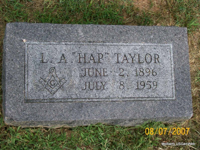 | TASH, Raymond Roy | Jan. 4, 1900 | Apr. 1, 1982 | SSW: Alta L. - Research Note: The funeral home was listed as Carson in Kansas City, MO, on the cemetery log book. WW I Draft Registration he was working on the farm for his father Tom Tash. His mother Sarah Tash was his nearest relative. Son of Thomas Tash and Sarah E. Clanton. - Possible news item. - Cassville Republican, Thursday, Dec. 5, 1918 - Ray Tash and Sam Hunter are the only occupants now of the county jail. Tash is confined upon a charge of assisting prisoners to escape. Hunter is charged with burglary and larceny. 1920 Census, he is in the Missouri State Penitentiary as a prisoner. He married Alta in 1925. | IOOF Log Book WW I Draft Reg. Online Newspapers Phyllis Long Photo Jay Trace |