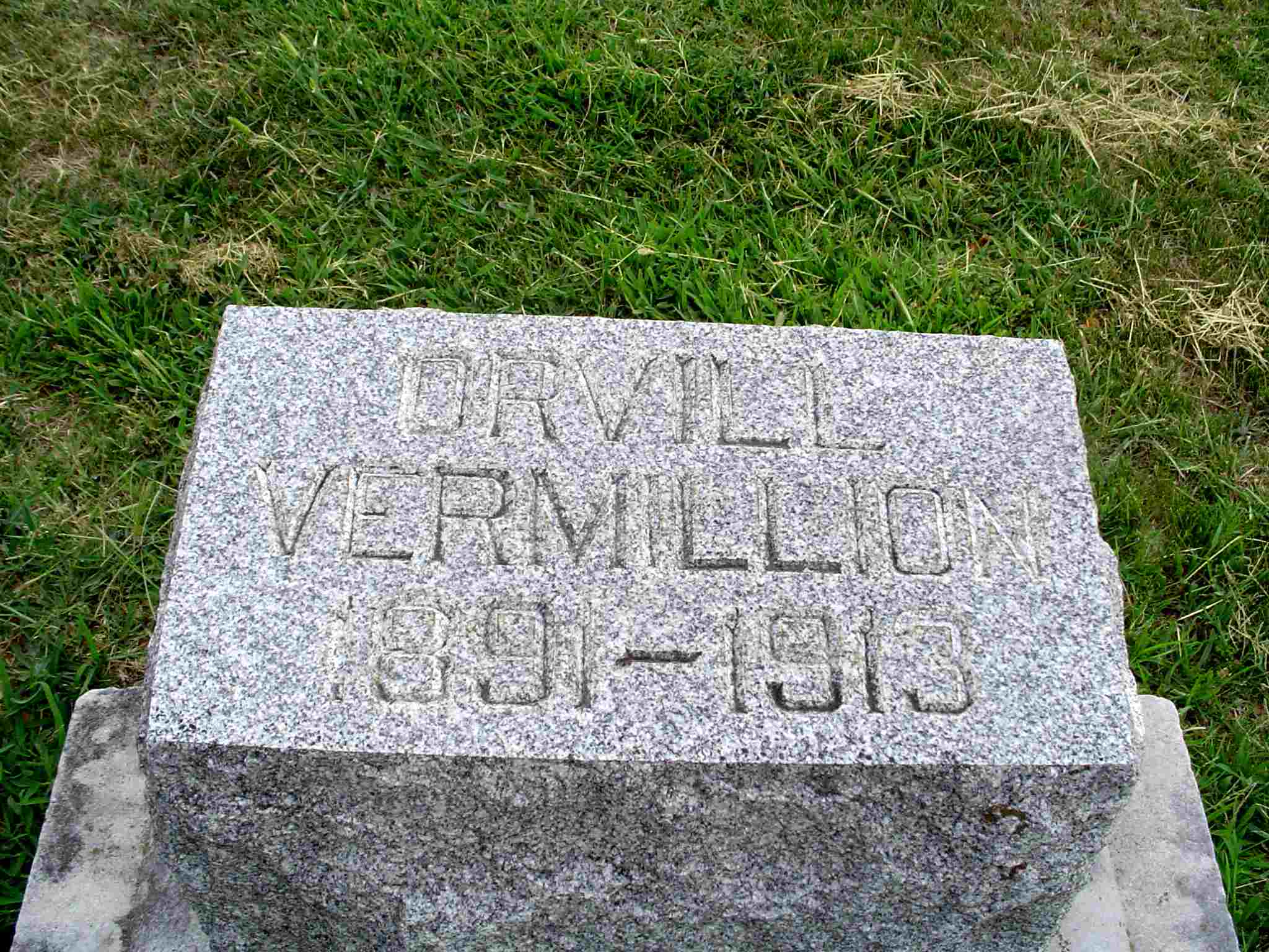 Research Note: The stone reads June not Jan. as posted by researcher to follow: Loda Orvill, b. 15 Jan. 1891 d. 13 Jan. 1913. Orvill was my uncle - my Mother's brother. His death certificate reads that he was a son of Burrell and Jane (Moore) Vermillion. Donna's Note: The cemetery log book has that his name was Lida Orvill. - Cassville Republican, January 16, 1913 - The Monett papers on Tuesday of this week announced the sudden death of Orvell J. Vermillion, son of Mr. and Mrs. Berl Vermillion of Monett, Monday night, age 21 years, 6 months, and 28 days. He had been suffering from heart trouble for some time but his death came unexpectedly. Funeral services were held at the family residence Wednesday afternoon. - Vermillion Plot Stone - Another Photo - Vermillion Plot Stone | Headstone Rod Smith Death Certificate Photos Note Donna Cooper Online Newspapers Phyllis Long Photo Jay Trace |