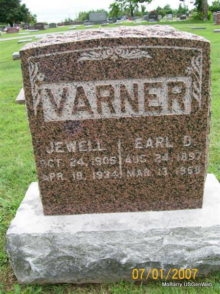 | VARNER, Jewell Pauline (LARKIN) | Oct. 24, 1905 Aurora, Lawrence Co., MO |