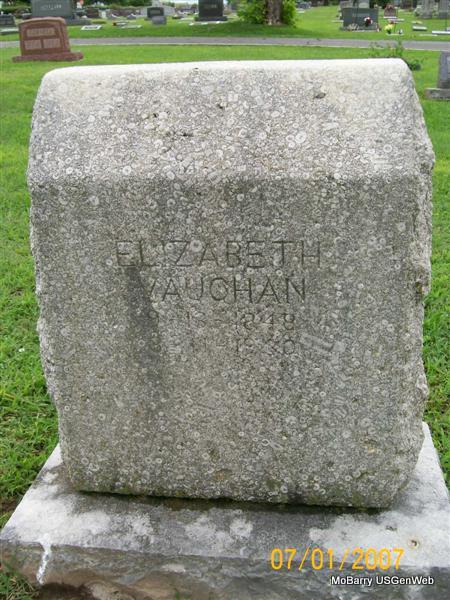| VAUGHAN, Elizabeth (HAWK) (McARTOR) | Sept. 17, 1847 | Mar. 11, 1930 Barry Co., MO |