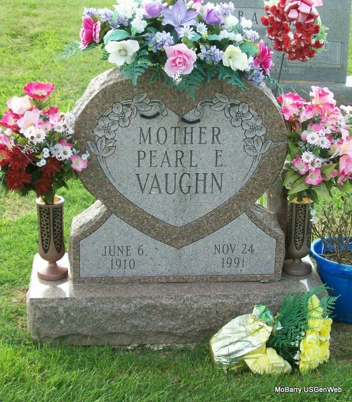 | VAUGHN, Pearl Edna (TUCKER) | June 6, 1910 | Nov. 24, 1991 | Inscription: "Mother" - Research Note: Daughter of James L. Tucker and Etoka M. Johnson. Wife of Lloyd Wayne Vaughan, Sr. | Census Phyllis Long Photo Jay Trace |