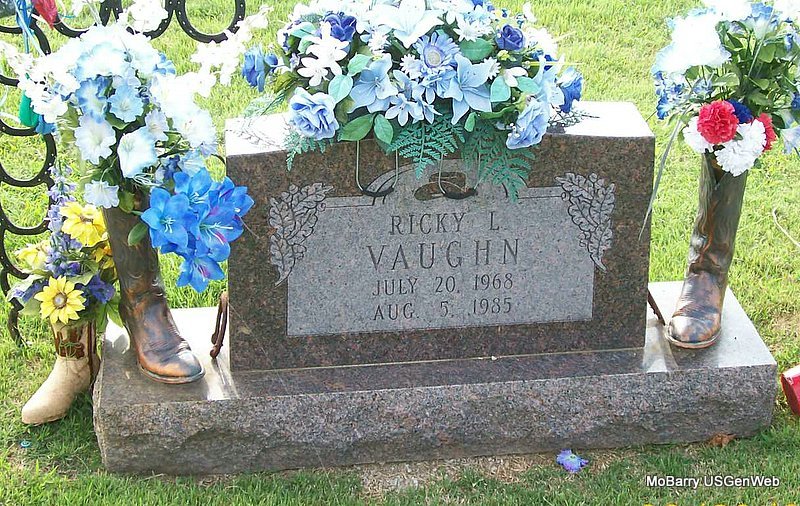| VAUGHN, Ricky L. | July 20, 1968 | Aug. 5, 1985 | Research Note: The cemetery log book reads that the lot owners were Leon and Deloris Vaughn. Leon and Deloris (Lombard) Vaughn were his parents. | IOOF Log Book Phyllis Long Photo Jay Trace |