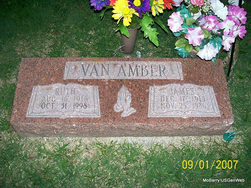 | VAN AMBER, Ruth Ethel | Aug. 16, 1916 | Oct. 31, 1998 | SSW: James - Research Note: The cemetery log book reads that Ruth's middle name was Ethel. | IOOF Log Book Donna Cooper Photo Jay Trace |