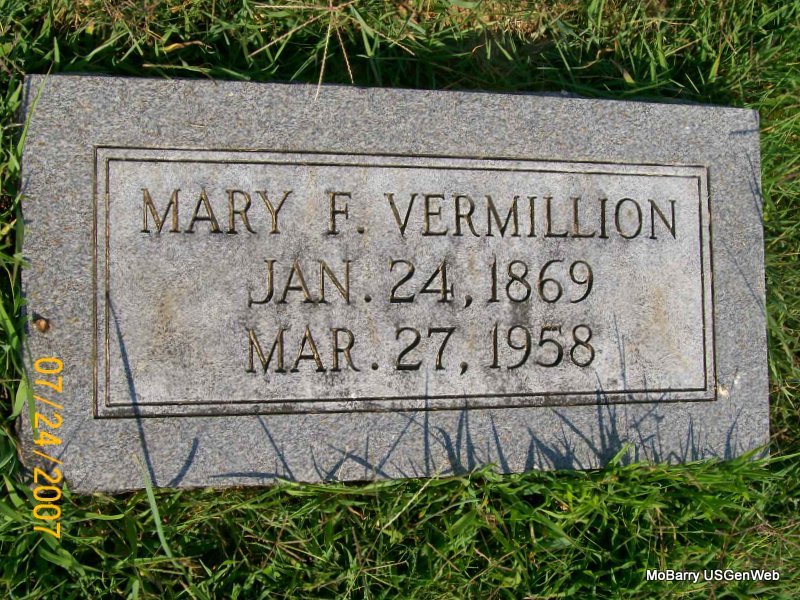 | VERMILLION, Nancy Jane (MOORE) | Nov. 22, 1866 St. Marys, MO |