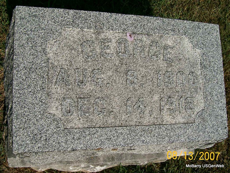 The cemetery log book has him logged in the old section in block 25, in lot 1, in grave 8, which is the same grave that Elizabeth, his wife, is buried in. Callaway Funeral Home records have him listed as Von, Gonten, Frederick and not as Gerhard-Von Gunten like the city has him listed. Their records indicate that he died in Seymour, MO and was a fruit farmer who died Feb. 16, 1912 and who was buried in Oakdale Cemetery and not IOOF. The funeral service was held at Andy Hawkins residence and the cause of death was pneumonia, age 67 years, 6 mos., 18 days. He was a widower who was born in Spitz, Switzerland July 28, 1844. His death certificate states his name was Von Gonten and that his body was brought to Monett but doesn't indicate a place of burial. Henry Ernest, Seymour, MO, was the informant. Since the city log book has him listed in IOOF and not Oakdale, he was added here. - 1980 Census, Great Bend, Barton, Kansas - Fred Von Gonten, age 35 born Switzerland; Elizabeth, age 37, born Switzerland; Eliza, age 10, daughter, born Switzerland; Lina, age 8, daughter, born KS; Alfred, son, age 4, born KS; Hulda, age 2, daughter, born KS; Clara, daughter, age 5 months, born KS; Henry Von Gonten, age 26, no relationship given, born Prussia. NO STONE | Note IOOF Log Book Callaway Funeral Home Death Certificate Donna Cooper Census Phyllis Long |