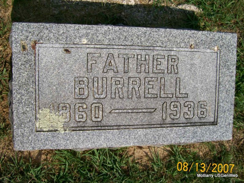 Research Note: Burrell was my grandfather, Headstone reads Father Burrell 1860-1936. He was Monett City Collector for some 17 years. May have been the first City Collector! His death certificate was filed with date given here, Barry Co., MO. His death certificate names Uriah and Matilda (Ethridge) Vermillion as his parents. Uriah was born in IL and Matilda in Ohio. Mrs. Jane Vermillion was given as his wife's name. Orvill Vermillion was the informant. - Another Photo - Vermillion Plot Stone - Vermillion Plot Stone - Another Photo | Headstone Rod Smith Death Certificate Photo Donna Cooper Photo Jay Trace |
