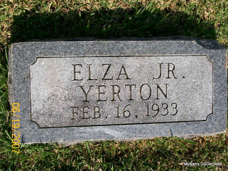 | YERTON, Elza, Jr. | No Date | Feb. 16, 1933 | Research Note: Most likely the son of Elza S. Yerton, Sr. and Gertrude Elizabeth Johnson. | Note Phyllis Long Photo Jay Trace |