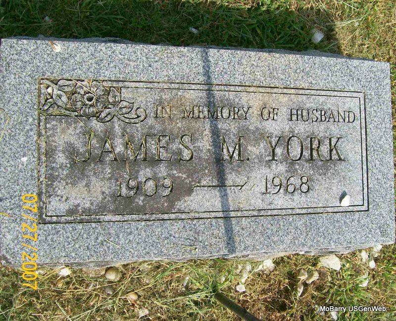 | YORK, James M. | 1909 | 1968 | SSW: Elizabeth - Inscription: "In Memory of Husband" - Research Note: He is buried in the Old Section, Block 73, Lot 2, Grave 8. The lot owner was C. J. Seward. - Another Stone | IOOF Log Book Phyllis Long Photo Jay Trace |