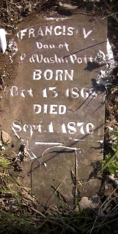 | FOWLER, Unknown | Feb. 28, 1833 | Feb. 2, 1905 | Research Note: Given name gone with time. | News Article Doris Clyde Leak |