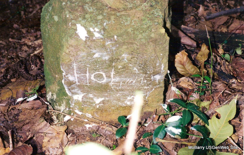 | HOLMES, ____ | No Date | No Date | Research Note: This is a sandstone marker. Goodspeed's 1888 history gives a bio for Allen Hudson, son of James and Sarah. It names his wife as Margaret Holmes, born in Polk Co., MO on Feb. 3, 1841 but was principally reared in AR. They were married on Oct. 3, 1860 in AR. Could be a connection. | Photo John Dill Mike Bivin Goodspeed Phyllis Long |