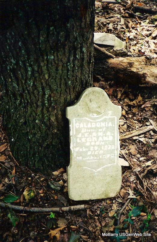 Inscription: "Dau. of J. E. and N. A." - Research Note: Daughter of James E. Legrand and Nancy Ann Brown. | Photo John Dill Mike Bivin Note Phyllis Long |