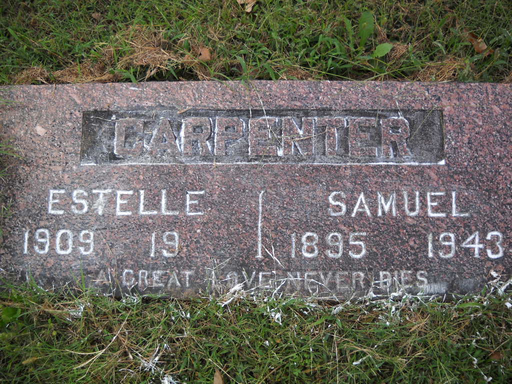 | CARPENTER, Anna Lucille | June 26, 1904 | Aug. 29, 2001 | Research Note: Daughter of James Oliver Carpenter and Elizabeth Catherine "Bessie" Cummings. - Carpenter Headstone | Census Phyllis Long Photos Ted Roller Donna Cooper |