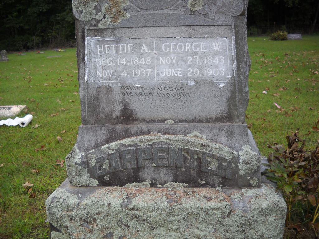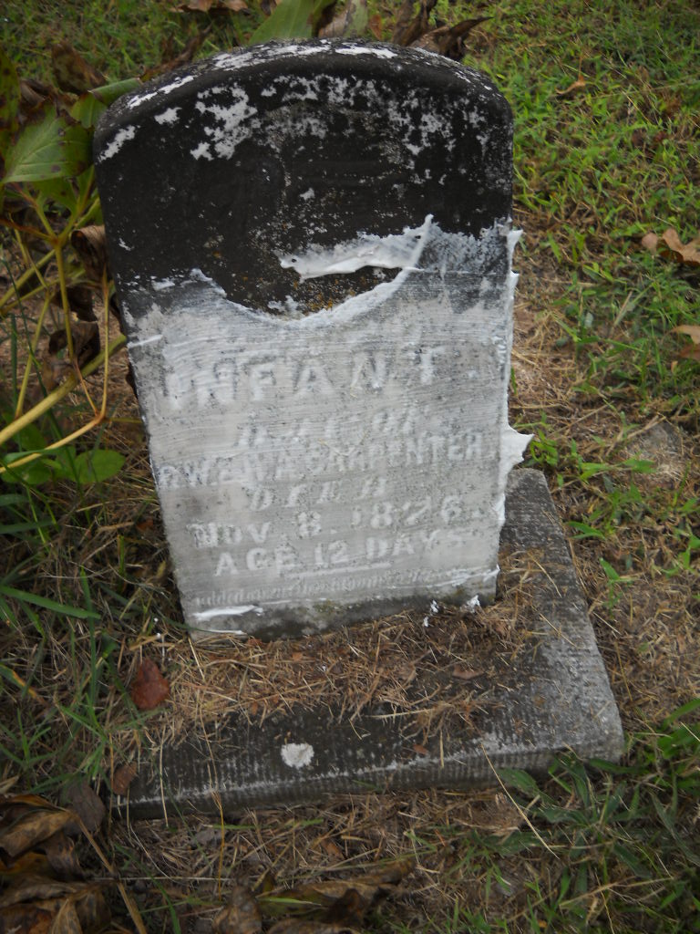 | CARPENTER, Infant | No Date | Nov. 8, 1876 | Inscription: "Infant Dau. of G. W. and H. A. - Age 12 Days" - Research Note: Daughter of George W. Carpenter and Hettie Ann Pulley. | Note Phyllis Long Photo Ted Roller Donna Cooper |