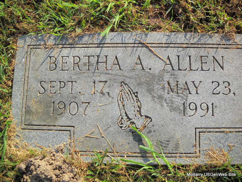 | ALLEN, Bertha A. (ELBERT) | Sept. 17, 1907 Corsicana, Barry Co., MO |