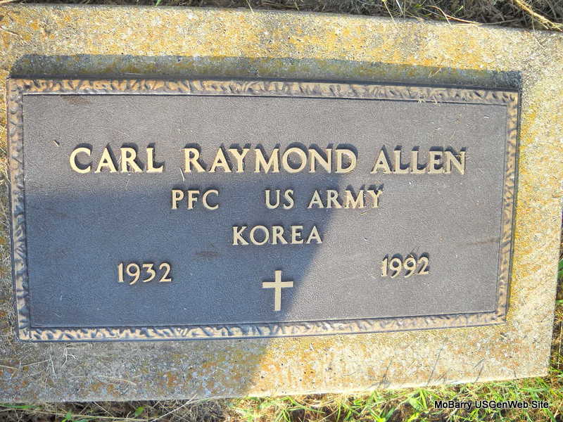 Research Note: Photo of stone has Carl L. Allen. Military stone has Carl Raymond Allen. Son of Walter L. Allen and Bertha A. Elbert. - Military Stone - Inscription: "PFC US ARMY KOREA" | Census SS Claims Index Phyllis Long Photo Ted Roller Donna Cooper |