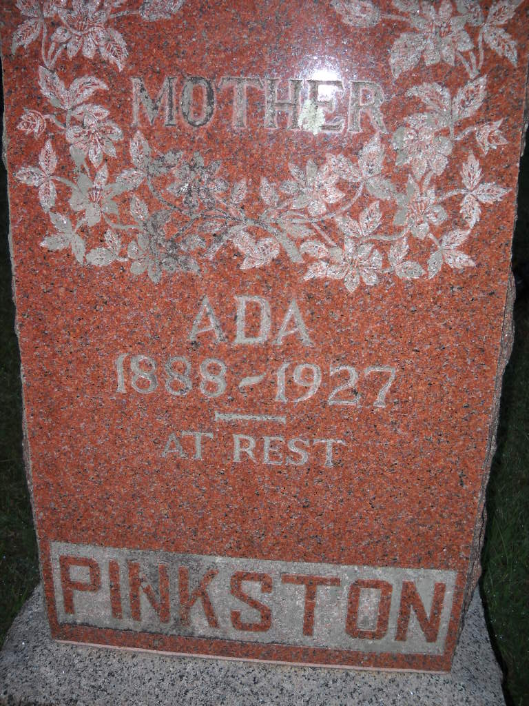 | PINKSTON, Ada | 1888 | 1927 | Inscription: "Mother - At Rest" | Photo Ted Roller Donna Cooper |