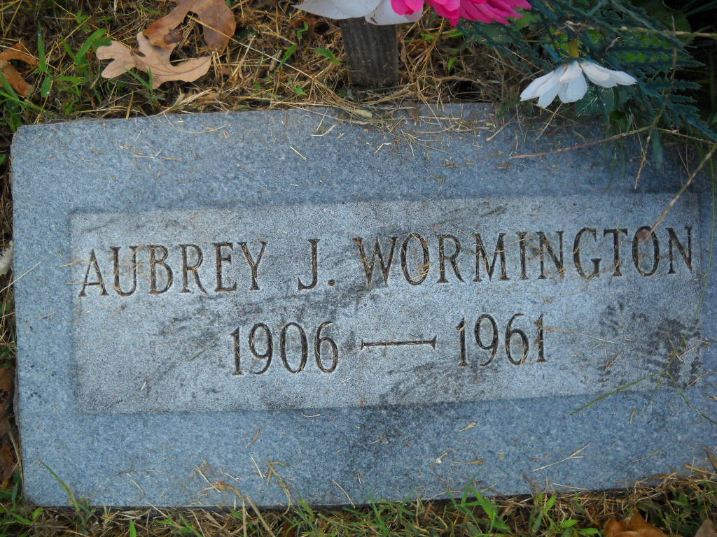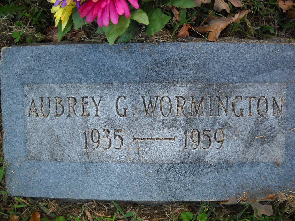 Research Note: Aubrey J. "Bud" Wormington died Aug. 2, 1961 at 4:30 a.m. and his wife was listed as Dorothy by Culver Funeral Home but that is all the information that was given. The funeral was Aug. 5, 1961 at the Mt. Olive Church. His age is given as 55. His Social Security information lists his birth date as July 20, 1906 and death as Aug. 1961. He worked for the railroad. He was a son of Asa Floyd and Cora E. (Gurley) Wormington. He was first married to Julia Maud Phillips and she died in 1930. She was a daughter of Jay Gregory and Julia (Banks) Phillips. | Death Certificate Donna Cooper Culver's Funeral Home, Vol. 9, P. 115, by Ted Roller Photo Ted Roller Donna Cooper |
