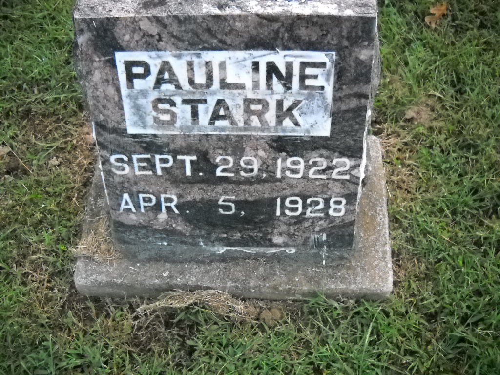 Inscription: "Sister" - Research Note: Her death certificate reads that she was single and that Festus Stark, born KY, and Elizabeth Jameson, born KY, were her parents names. J. W. Chine, Aurora, MO, was the informant. - Stark plot stone | Death Certificate Donna Cooper Photos Ted Roller Donna Cooper |