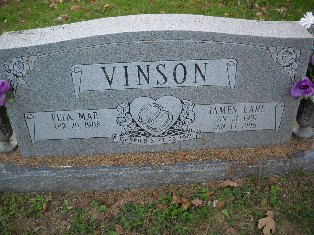 SSW: Etta Mae - Inscription: "Married Sept. 26, 1925" - Research Note: Son of Thomas E. Vinson and Alice Elizabeth James. | Census Phyllis Long Photo Ted Roller Donna Cooper |