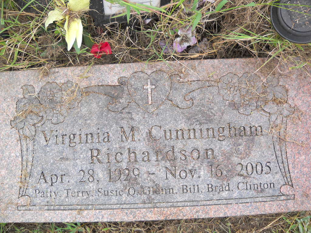 | RICHARDSON, Virginia M. (CUNNINGHAM) | Apr. 28, 1929 | Nov. 16, 2005 | Inscription: "Patti,Terry, Susie Q. Glenn, Bill, Brad, Clinton" | Photo Ted Roller Donna Cooper |