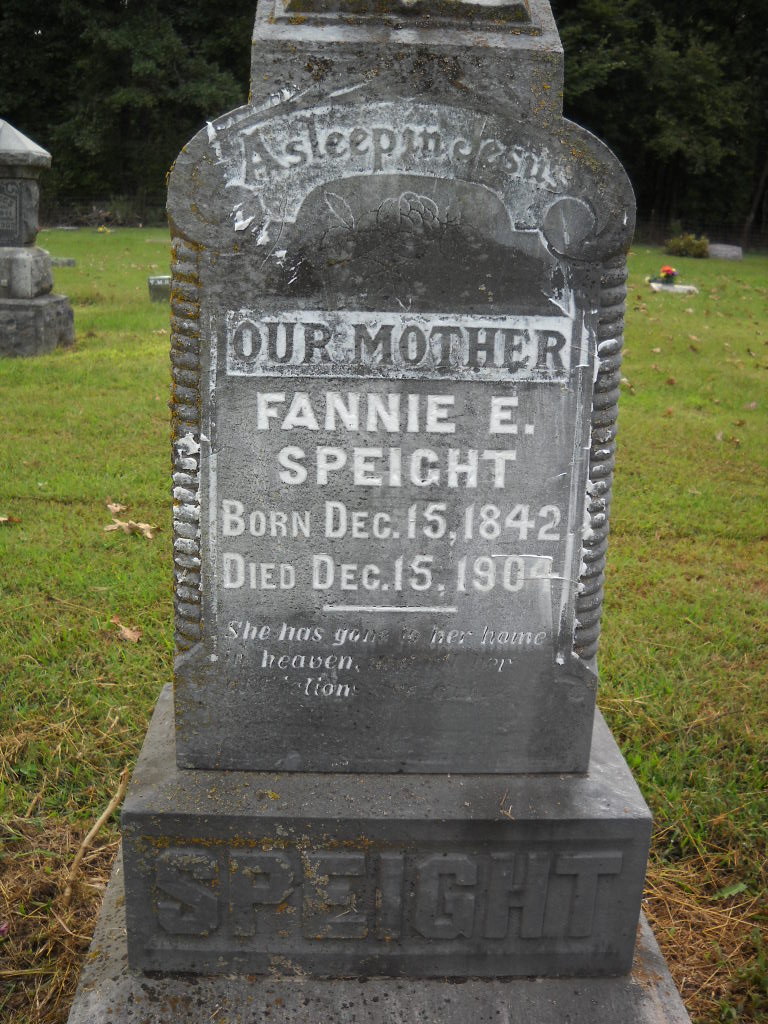 Dec. 15, 1904 | Inscription: "Our Mother" - Research Note: Daughter of Jesse Potter and Martha Johnson. Eliza F. Potter married Joshua Gray Speight on Dec. 3, 1865 in Polk Co., MO. The Speight family was from Morgan Co., TN. | Note Donna Cooper Census MO Marriage Records Phyllis Long Photo Ted Roller Donna Cooper |