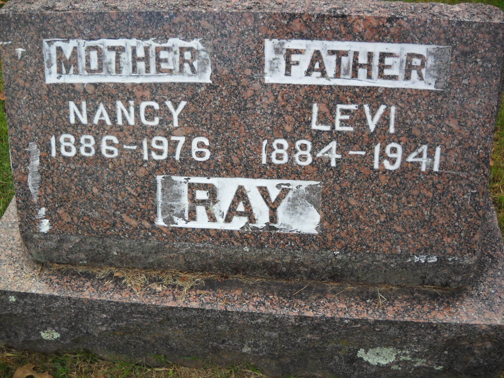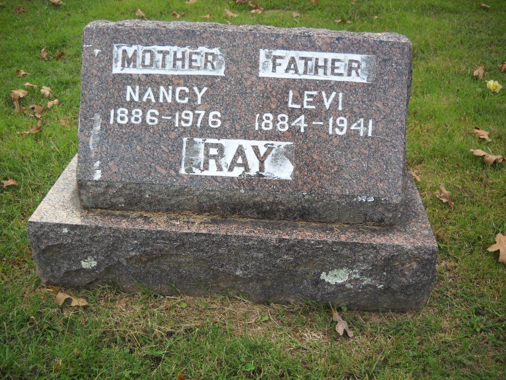 Sept. 25, 1941 | SSW: Nancy - Inscription: "Father" - Research Note: Harry Levi Ray was a son of Samuel Franklin and Melvina (Birkes) Ray. His stone just has Levi on it. - Neosho, Mo., Sept. 27. - Funeral services for the Rev. Levi Ray, who died Thursday afternoon at the Cardwell hospital in Stella, will be held at 2 o'clock Sunday afternoon at the Fairview Baptist church. | Joplin News Census Phyllis Long Photo Ted Roller Donna Cooper |