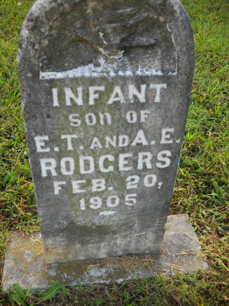 | RODGERS, Infant | No Date | Feb. 20, 1905 | Inscription: "Son of E. T. And A. E." - Research Note: Son of Elmer Thomas Rodgers and Artile Elizabeth Williams. | Photo Ted Roller Donna Cooper |
