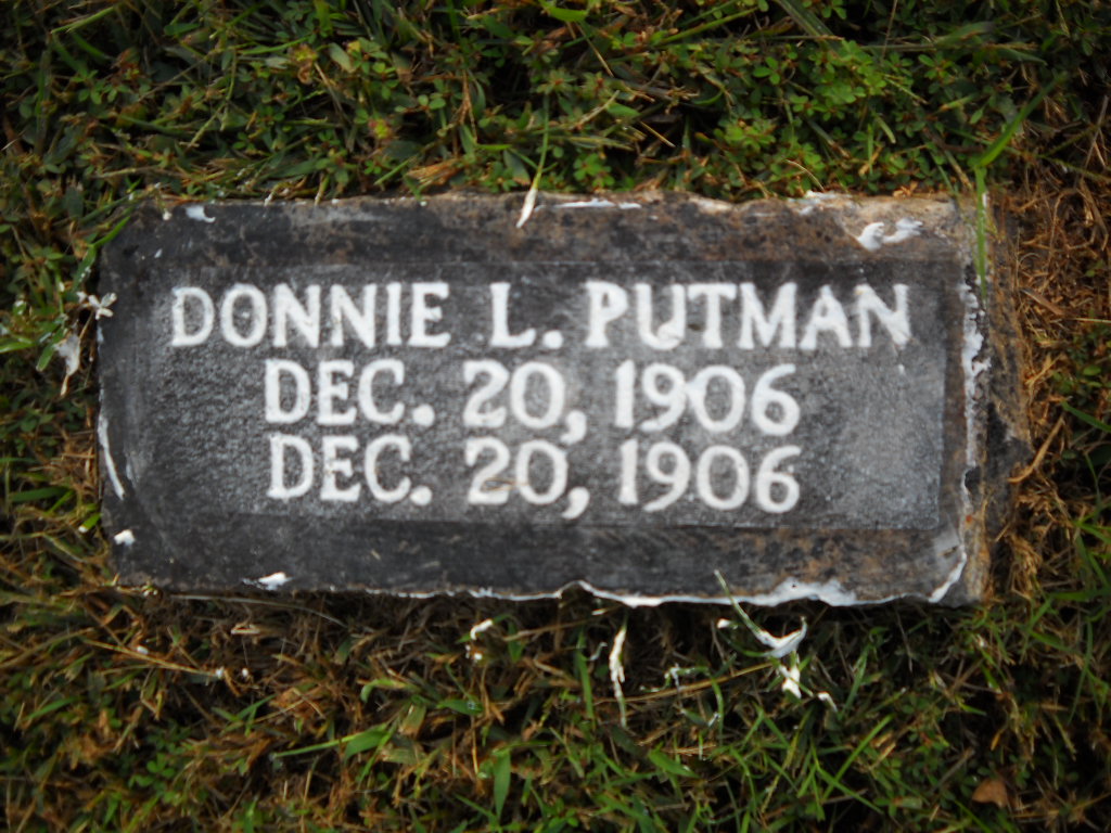 | PUTMAN, Donnie L. | Dec. 20, 1906 | Dec. 20, 1906 | Research Note: Son of Louis Chrisman Putman and Hettie Ann Thompson. He is buried near Dale and John Bogle. | Note Donna Cooper Photo Ted Roller Donna Cooper |
