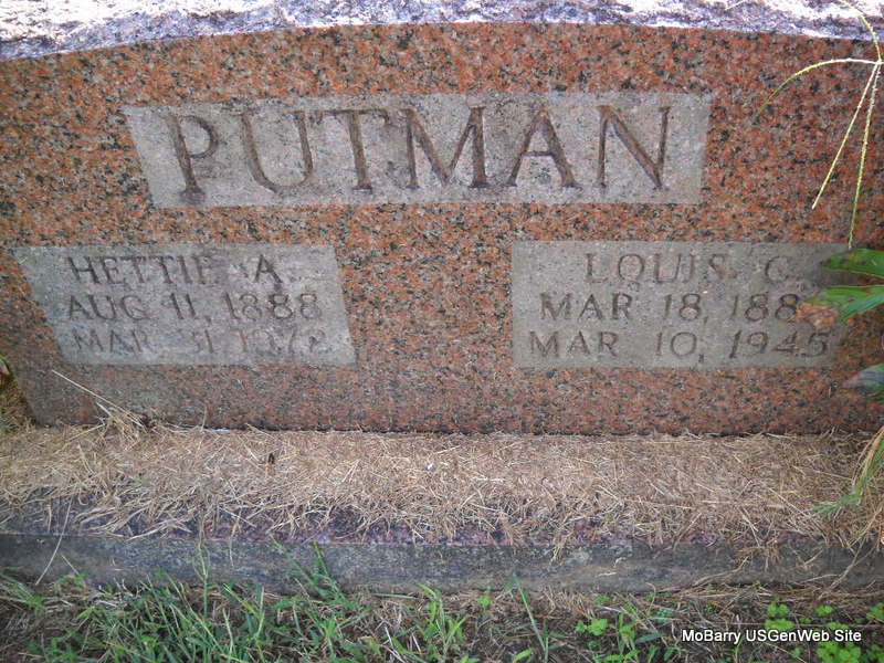 | PUTMAN, Louis Chrisman | Mar. 18, 1886 | Mar. 10, 1945 | SSW: Hettie Ann - Research Note: Son of John Ezekiel Putman and Sarah Elizabeth Grimes. His wife was Hettie Ann Thompson. | Census Phyllis Long Photo Ted Roller Donna Cooper |