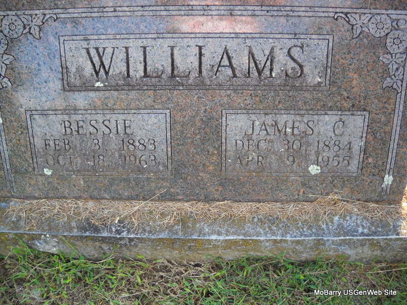 | WILLIAMS, Mary Elizabeth "Bessie" (CHRISTOPHER) | Feb. 3, 1883 Pierce City, Lawrence Co., MO |