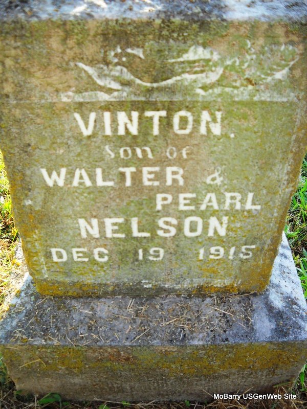 | NELSON, Vinton | No Data | Dec. 19, 1915 | Inscription: "Vinton - Son of Walter and Pearl Nelson" | Photo Ted Roller Donna Cooper |