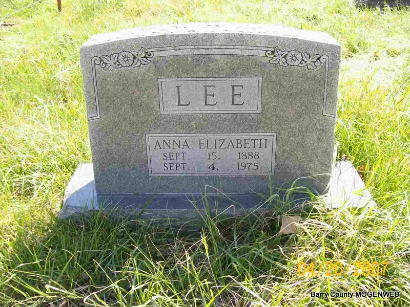 | LEE, Anna Elizabeth (JACQUES) | Sept. 15, 1888 MO |