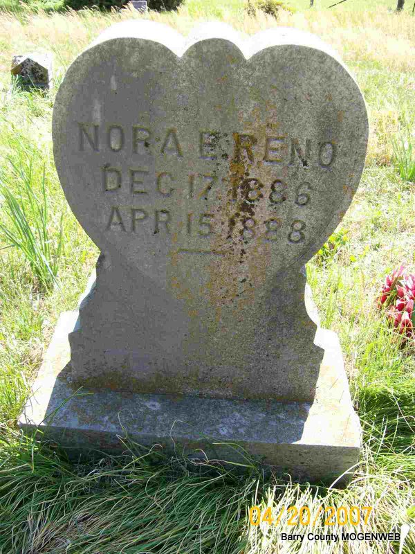 | RENO, Nora E. | Dec. 17, 1886 | Apr. 15, 1888 | No Data | 1999 Transcription Photo Jay Trace |