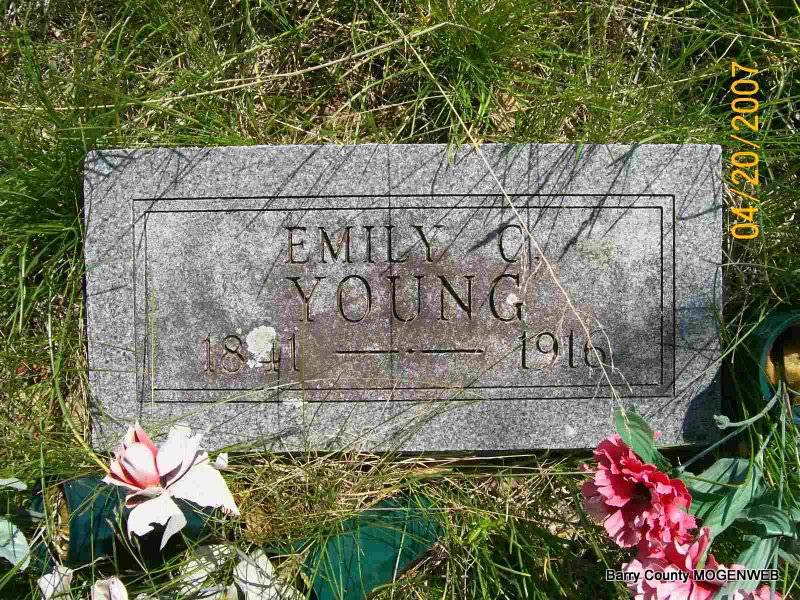 Research Note: Her death certificate names William Henry Young, born in VA as her father which is incorrect. Her father was William Andrew Henry. She was a widow. Her mother was Elizabeth Powers. Her stone reads 1841 as the birth year, but the death certificate reads April 16, 1844. Her age was given as age 72 years, 1 months and 3 days, which would make the 1844 date a correct date. She died from the effects of TB. Frank Young of Monett, MO, gave the information. | Death Certificate Donna Cooper 1999 Transcription Photo Jay Trace |