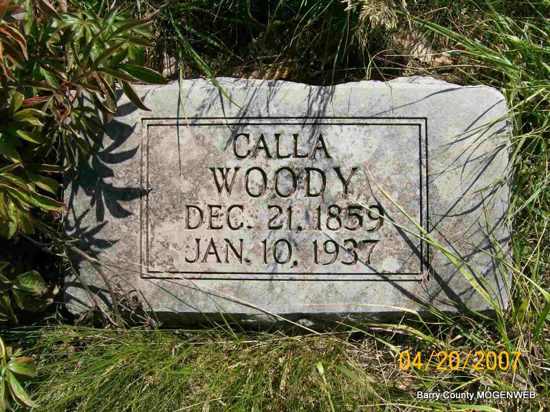 | WOODY, Calla | Dec. 21, 1859 | Jan. 10, 1937 McDonald Co., MO |