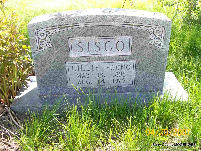 | SISCO, Lillie (YOUNG) | May 18, 1898 | Aug. 14, 1979 | Research Note: Daughter of Franklin Young and Minnie Robbins. | Census Phyllis Long 1999 Transcription Photo Jay Trace |