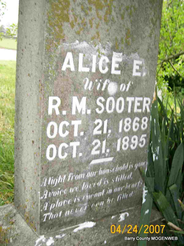| SOOTER, Alice E. (YOUNG) | Oct. 21, 1868 Barry Co., MO |