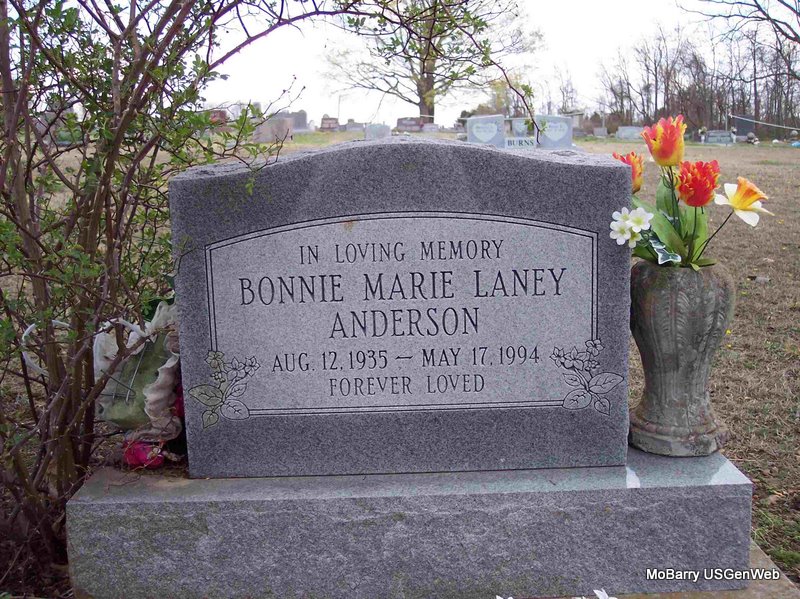 | ANDERSON, Bonnie Marie (LANEY) (MACKIN) (EBERT) | Aug. 12, 1935 Exeter, Barry Co., MO |